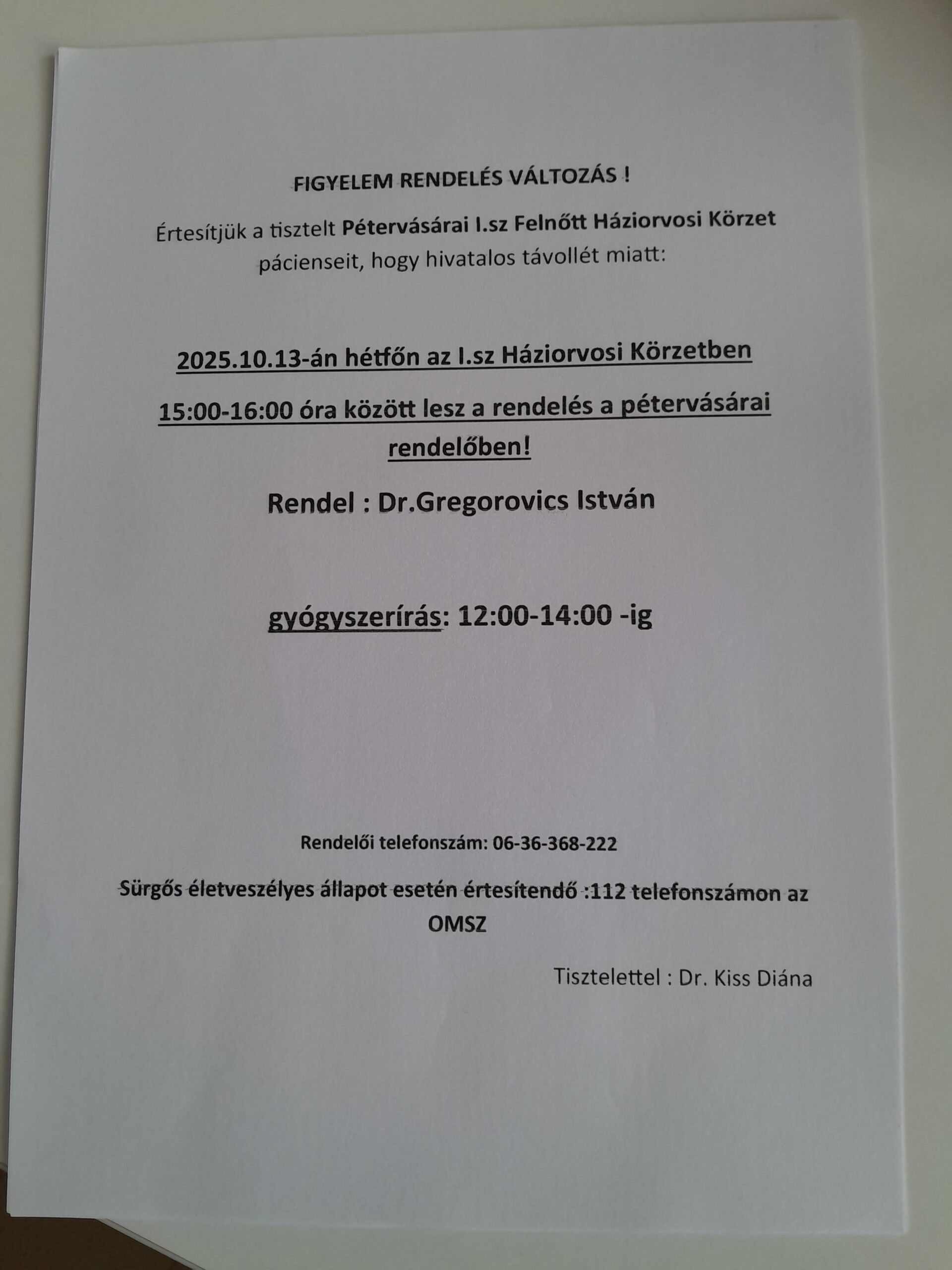 Rendelés változás