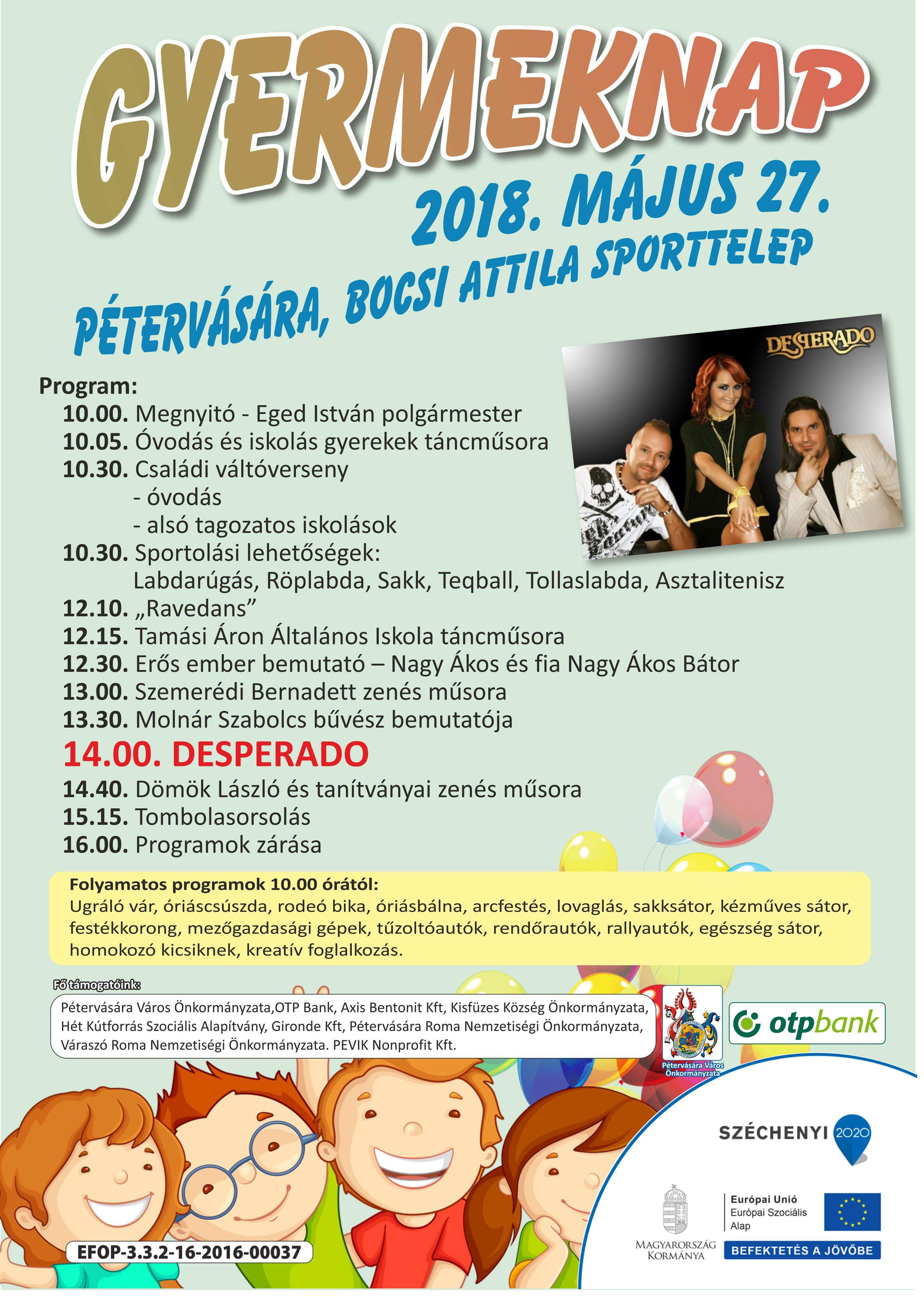 A hagyományokhoz híven idén is megrendezésre került a Gyermeknap a Bocsi Attila Sporttelepen. A dátum 2018-ban is május utolsó vasárnapja volt; május 27-e.